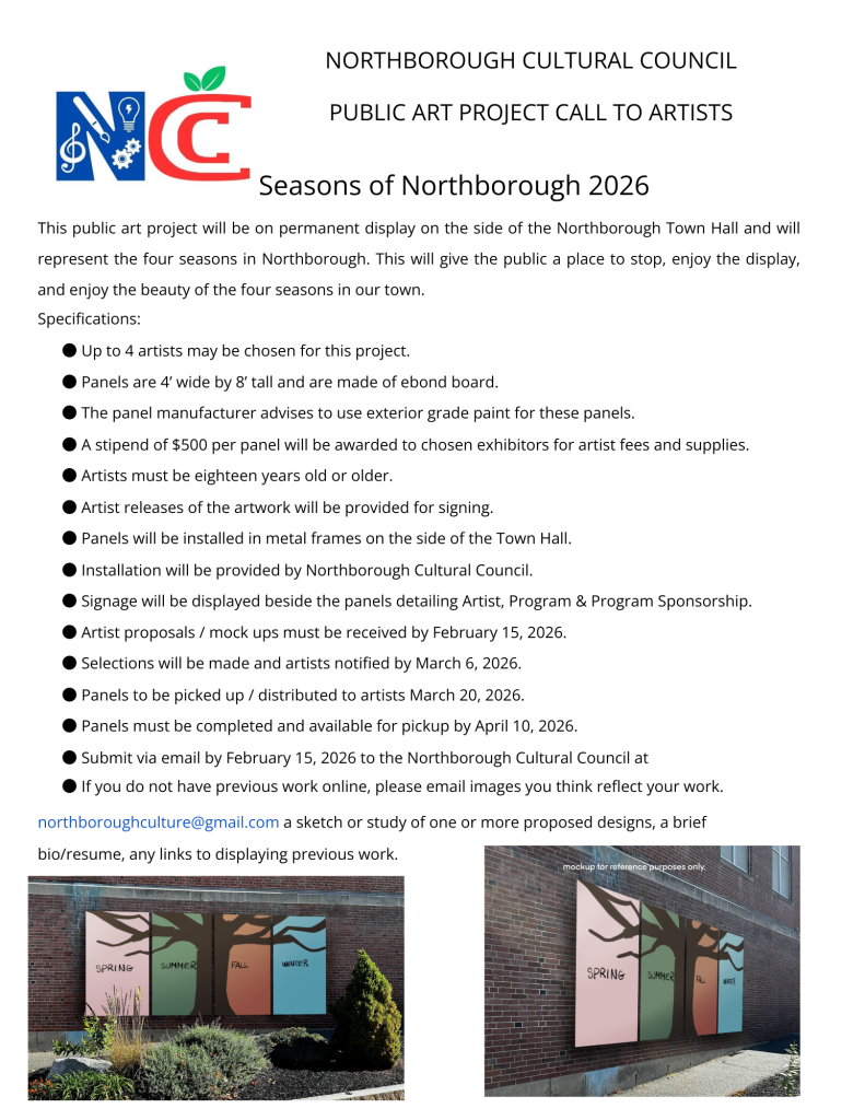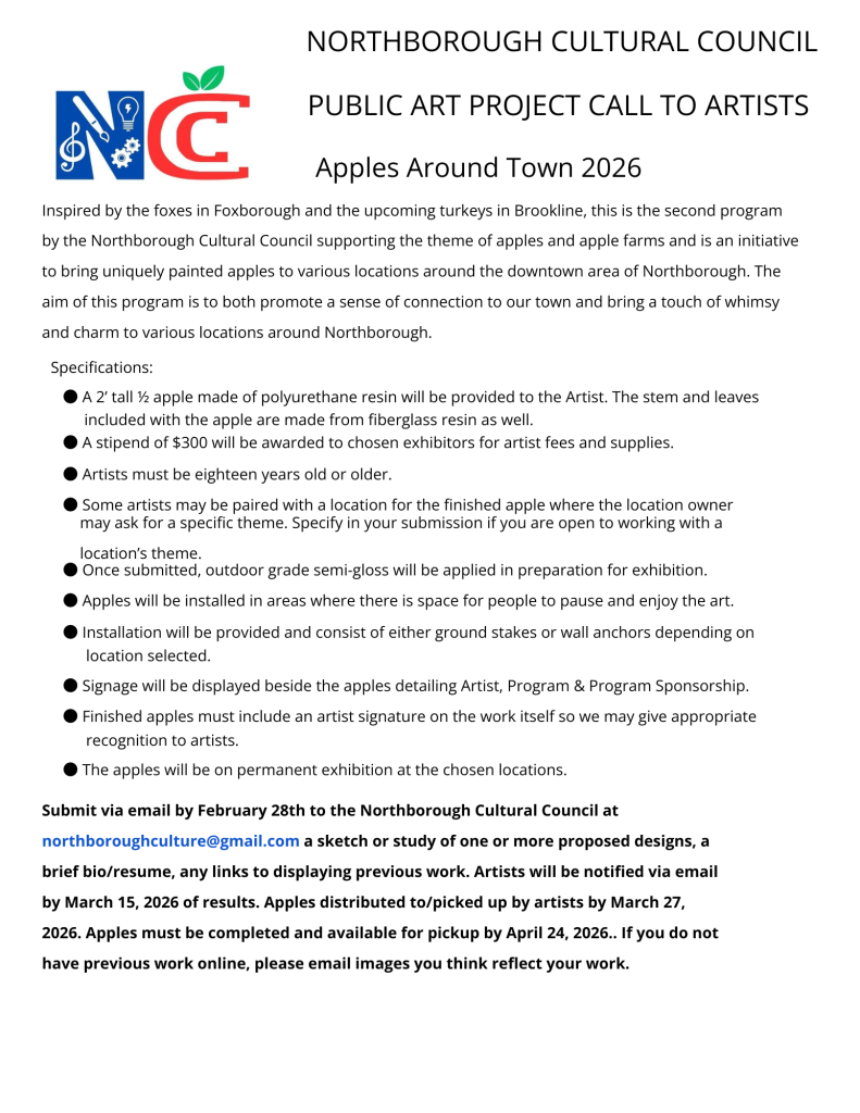 Or you can contact our Chair Karen at northboroughculture@gmail.com to find out about future meetings.