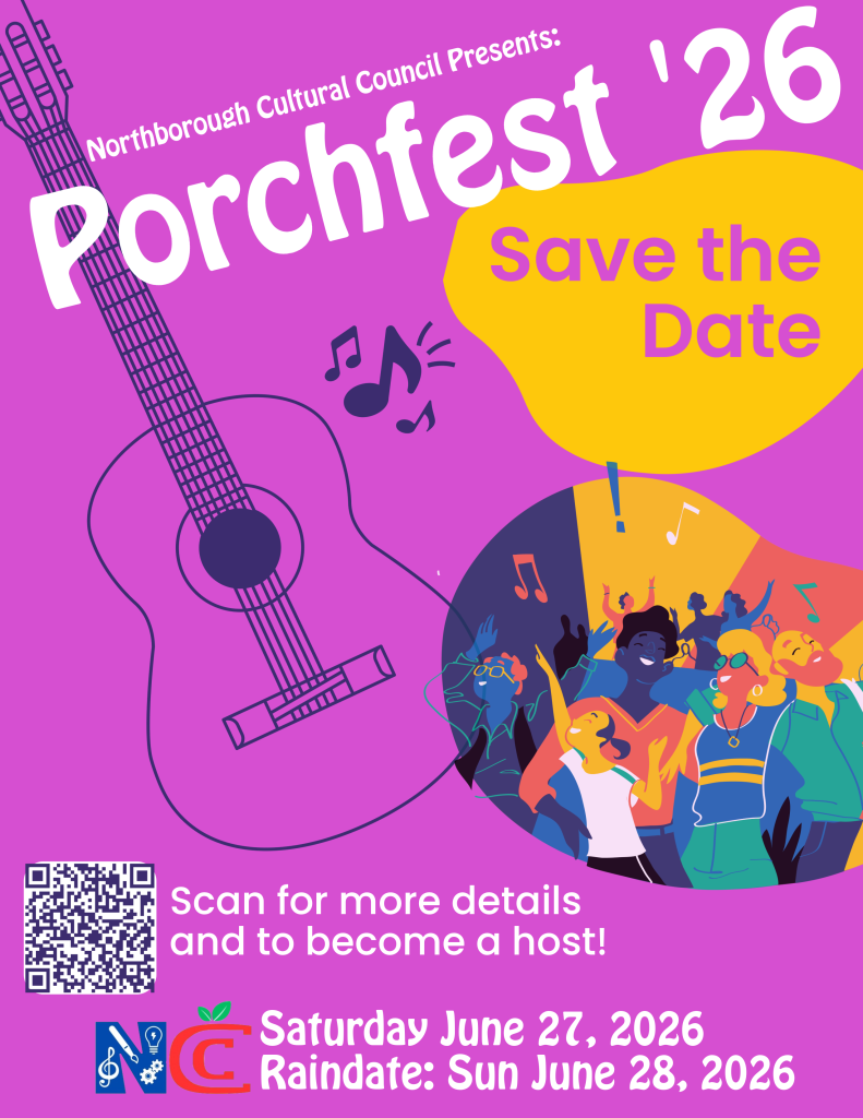 Welcome to Northborough Porchfest 2026! This community-organized music festival shines a spotlight on the exceptional musical talent in our community and creates a space for everyone to find the joy that live music conveys. With a tremendous appreciation of the arts, this event hopes to offer a wide genre of musical performances. Taking place on porches, back yards, at businesses, green spaces, and popular community spots within many neighborhoods.